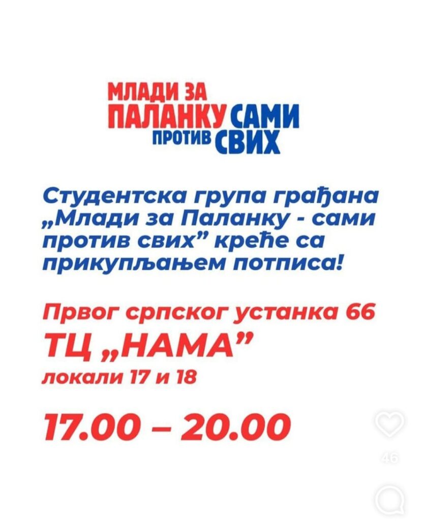 Права студентска листа ”Млади за Паланку – сами против свих” почела прикупљање потписа