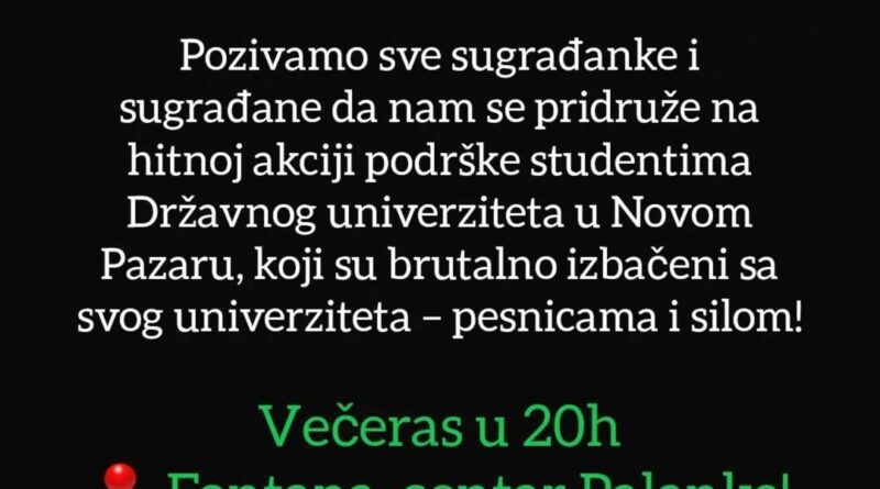 Просветни радници Смедеревске Паланке: ПОДРШКА СТУДЕНТИМА ДРЖАВНОГ УНИВЕРЗИТЕТА У НОВОМ ПАЗАРУ