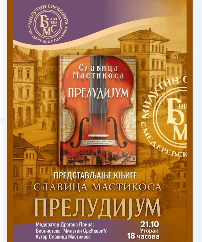 У Библиотеци ”Милутин Срећковић” у уторак 21. октобра у 18 часова, одржаће се промоција романа „Прелудијум“, Славице Мастикосе.